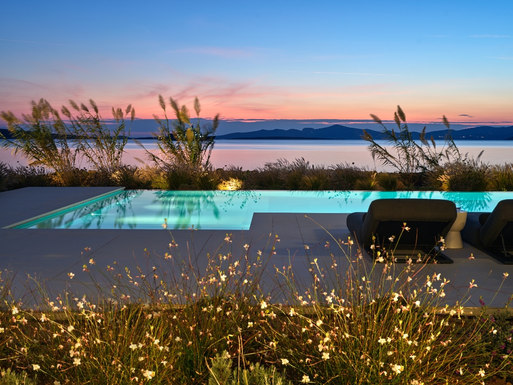 Villa Zenia is an executive waterfront villa built in 2025, featuring a swimming pool, breathtaking sunsets, and accommodation for up to 12 guests.