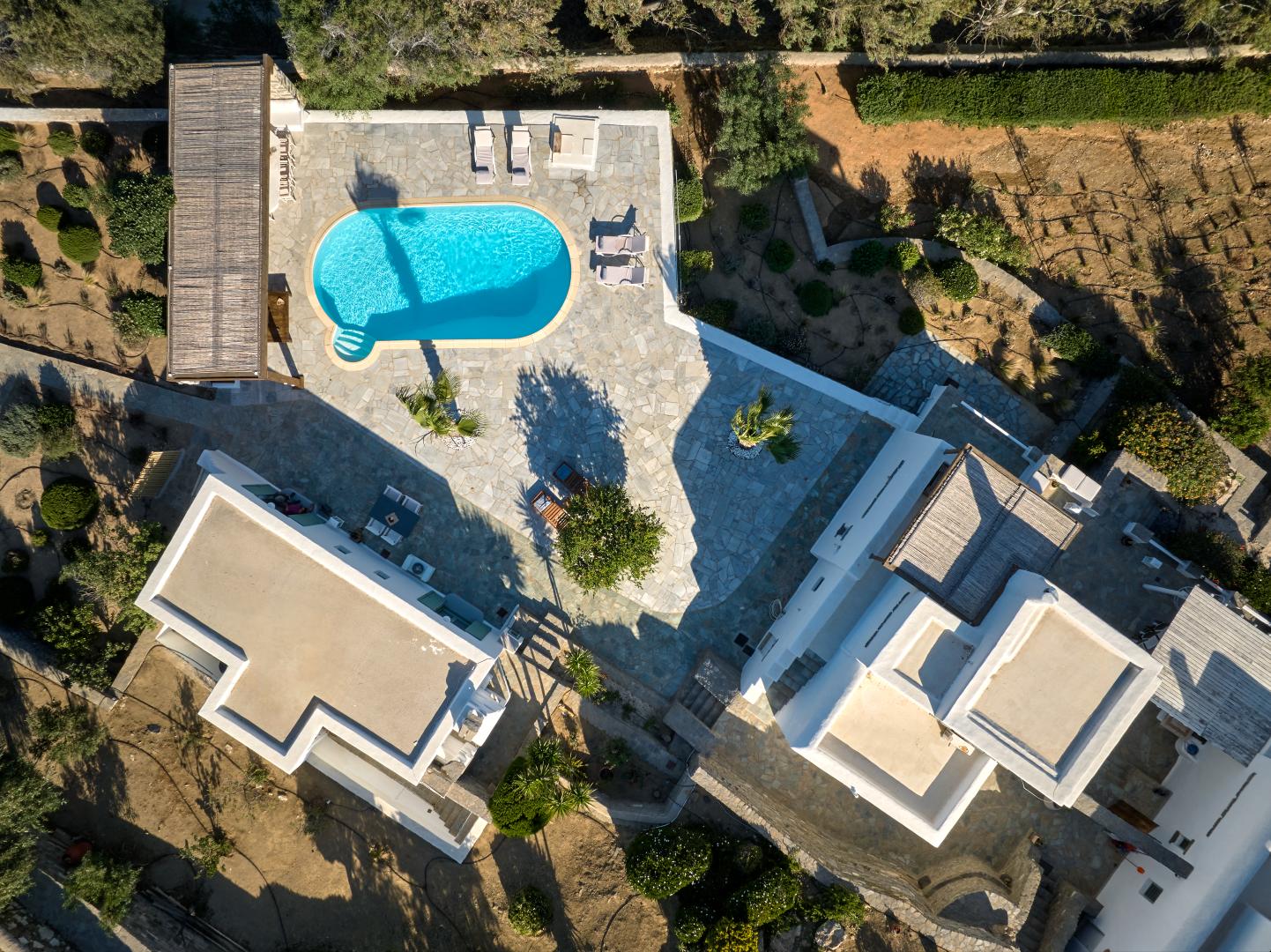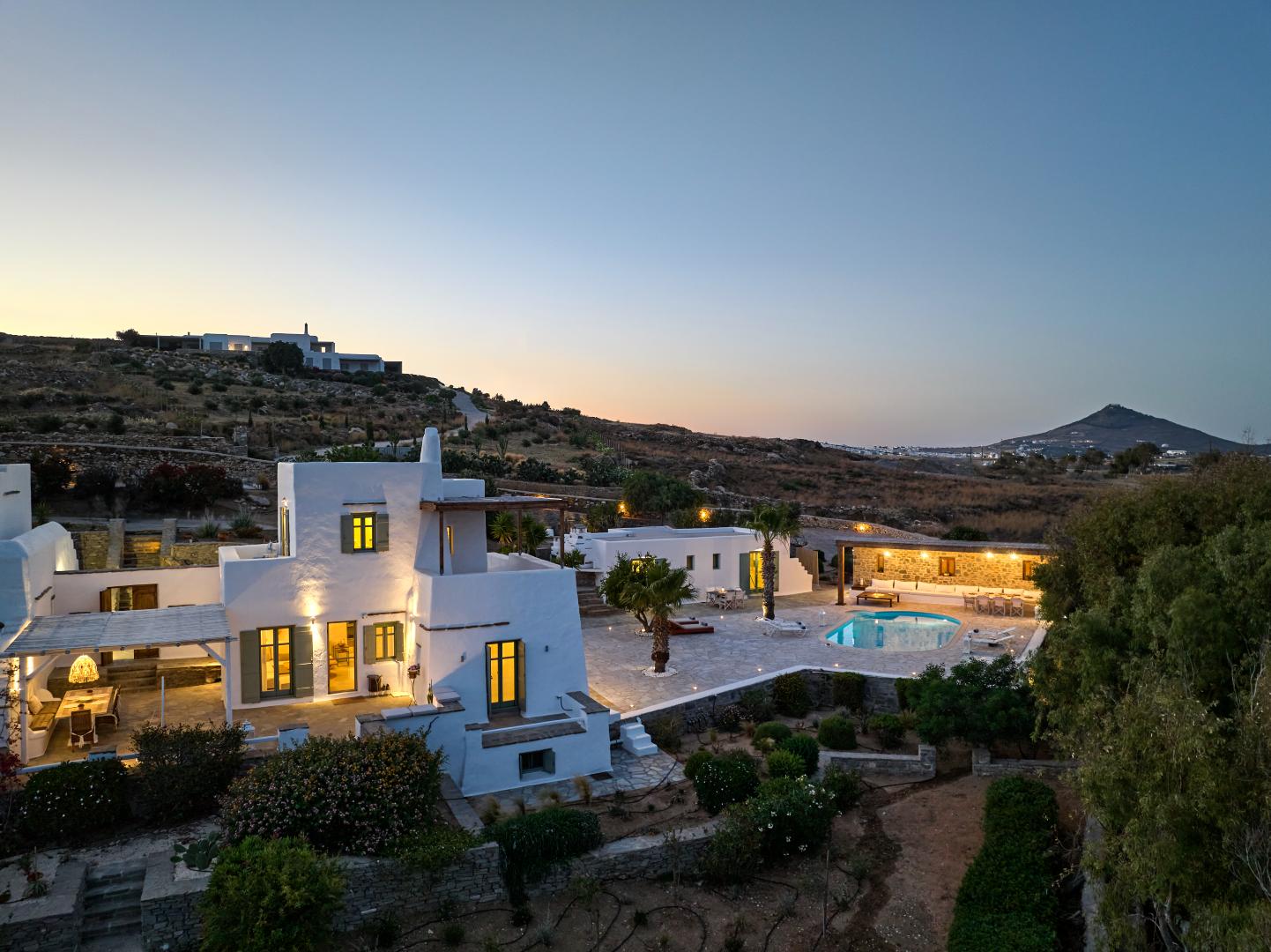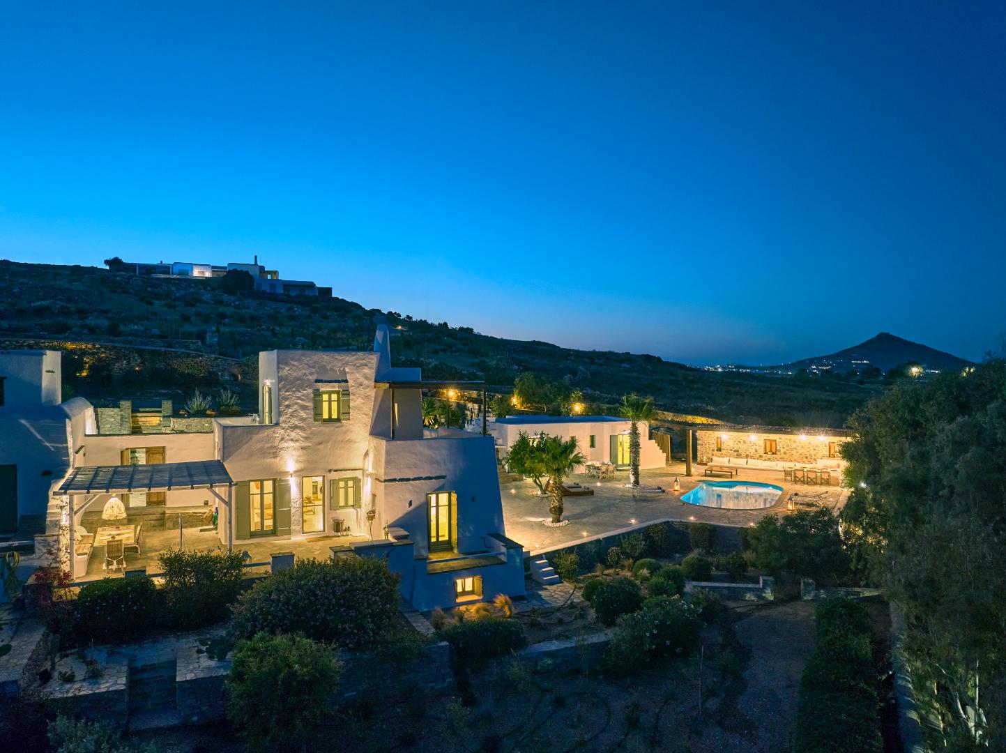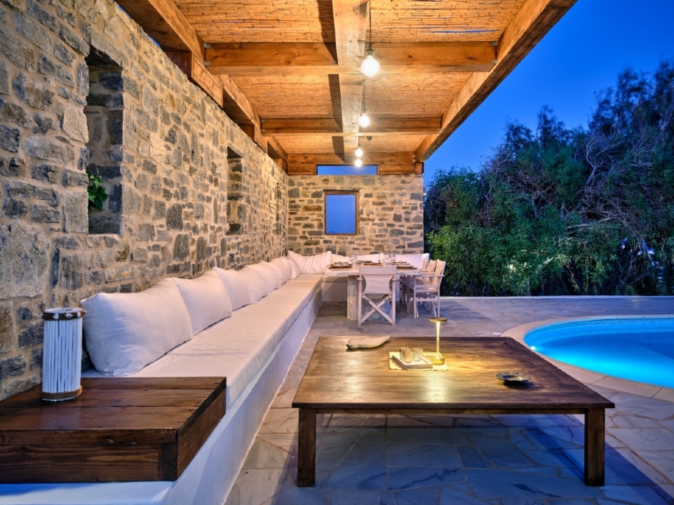 Villa NIF is a spacious property featuring a comfortable outdoor area and a large swimming pool, making it the perfect choice for groups of up to 11 people, with 5 cozy bedrooms. The villa consists of the main house and 2 guest houses, each with separate and independent entrances, fully equipped kitchenettes, and private bathrooms.