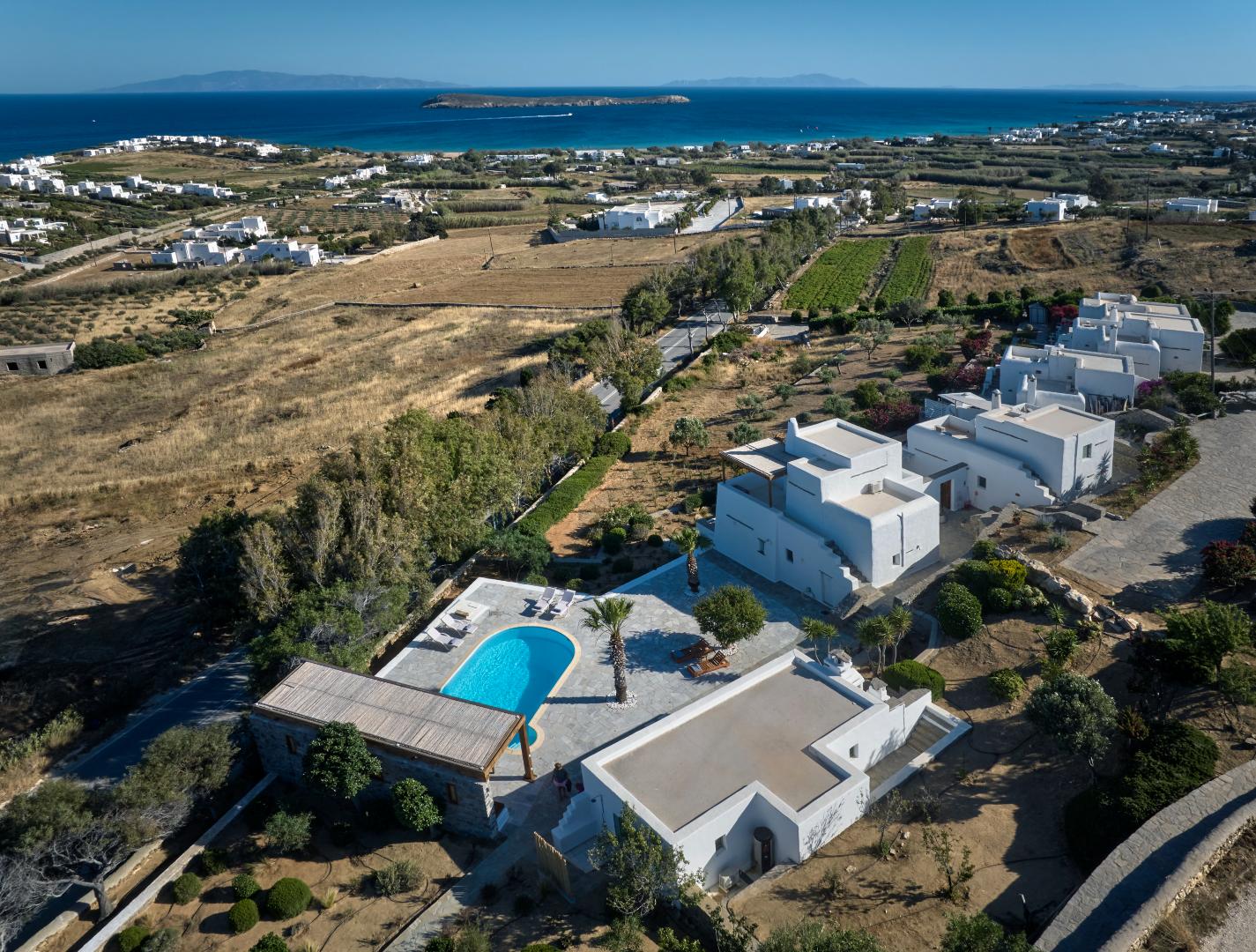 Villa NIF is located in the Golden Beach area, just a few minutes from the most beautiful and famous beach in Paros, renowned for its water sports.