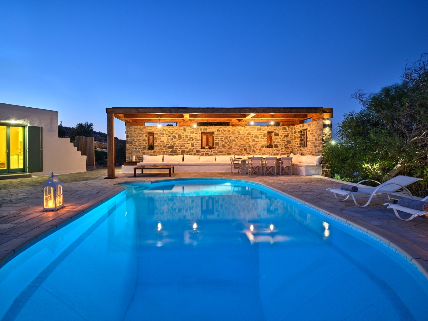 The outdoor area is the highlight of the property, featuring spacious seating areas, a splendid garden, and a large swimming pool. Villa NIF is the ideal choice for groups and families who enjoy gathering together, thanks to its ample outdoor spaces.